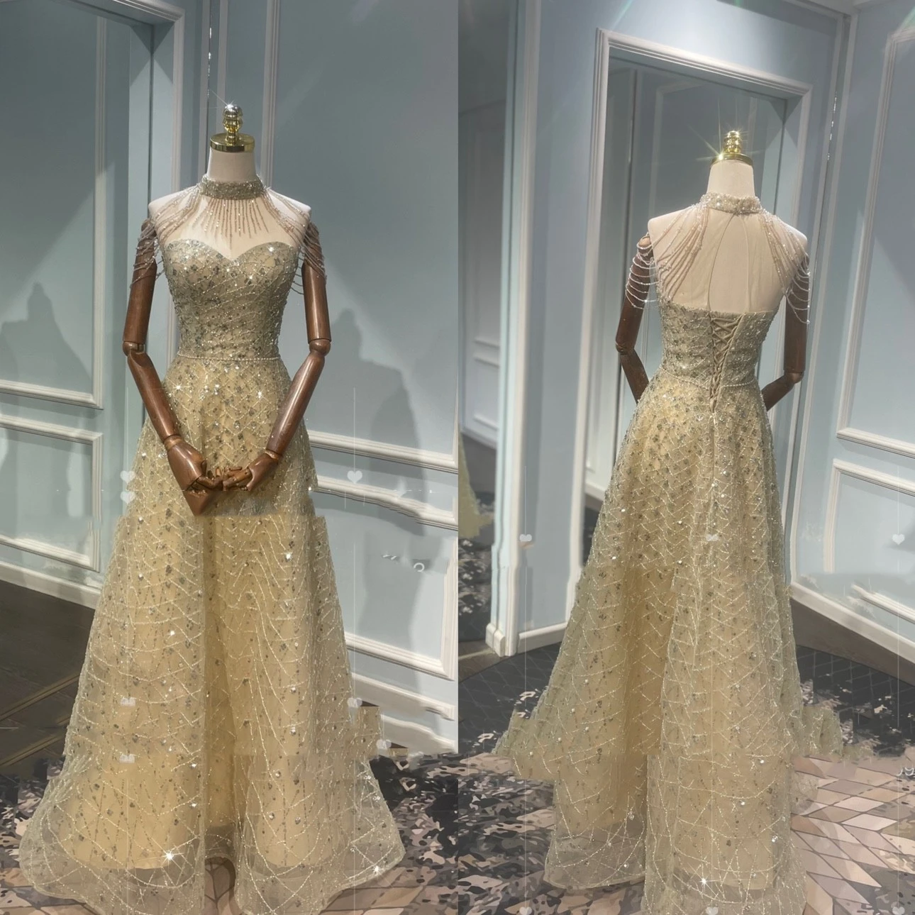 Golden Neck Hanging Light Luxury Toast Evening Dress